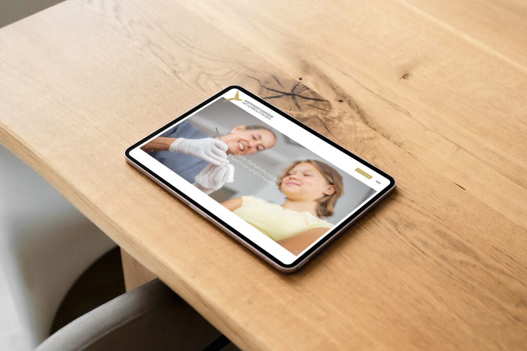 Auf Basis des bestehenden CI Books inklusive Logo entwickelten wir eine neue Website, die klar strukturiert ist, Leistungen verständlich erklärt und Patient:innen den Weg zur Terminbuchung spürbar erleichtert. Ergänzt wurde der Auftritt durch neue Fotos, die moderne Ausstattung, die freundliche Atmosphäre und den hohen Anspruch der Praxis authentisch einfangen.